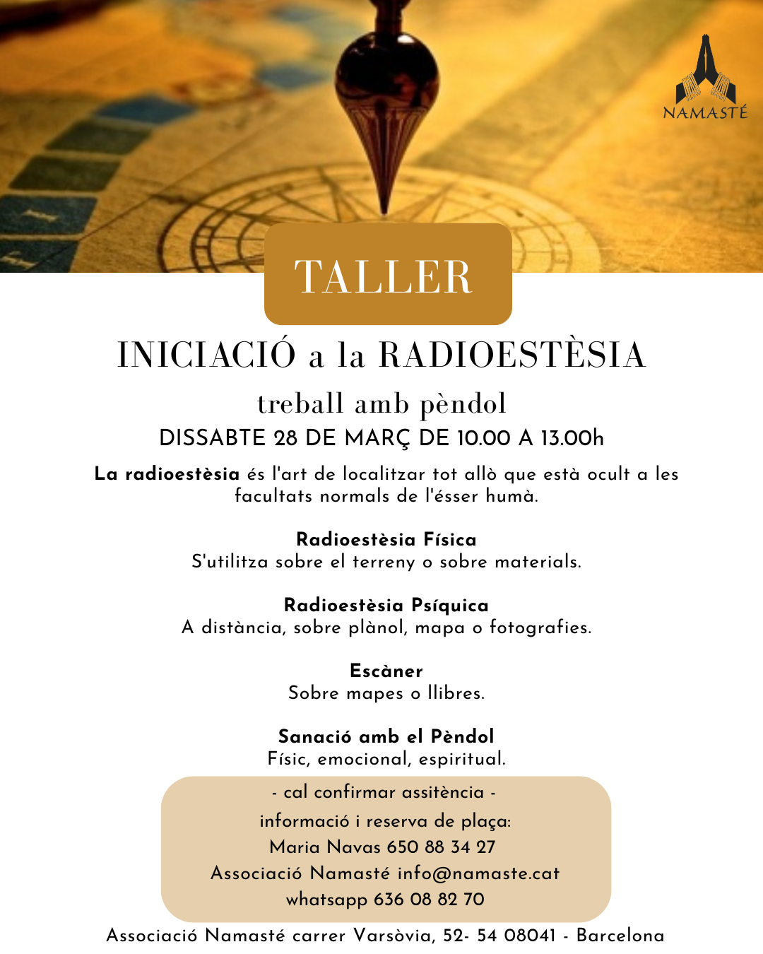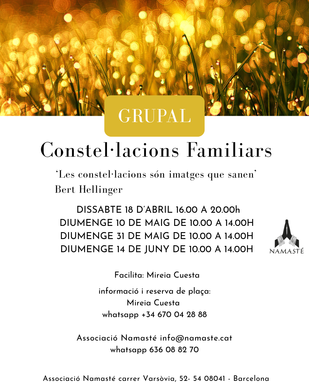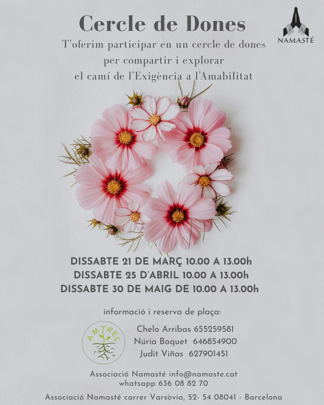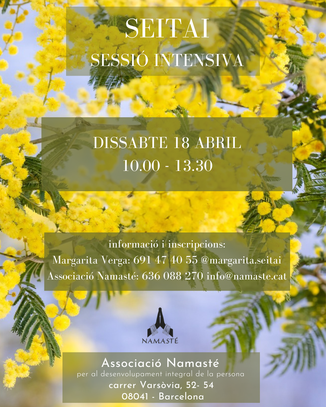 Si vols REBRE INFORMACIÓ de les nostres activitats a través del correu electrònic, deixa’ns la teva adreça a info@namaste.cat